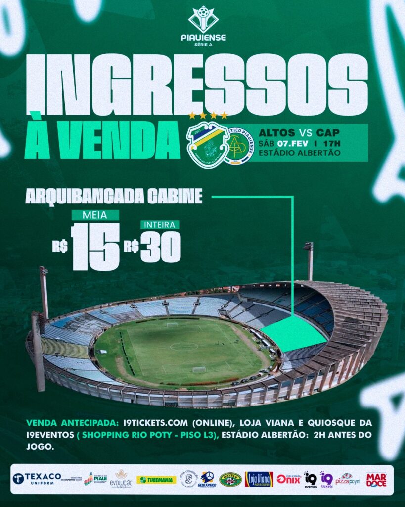 Os ingressos estarão disponíveis por valor único, com opção de meia-entrada, e podem ser adquiridos tanto em pontos físicos quanto pela internet. Crianças de até 12 anos não pagam, e as entradas podem ser compradas antecipadamente em locais como o Quiosque da i9eventos (Shopping Rio Poty) e nas Lojas Viana (Centro), além da bilheteria do estádio no dia da partida.